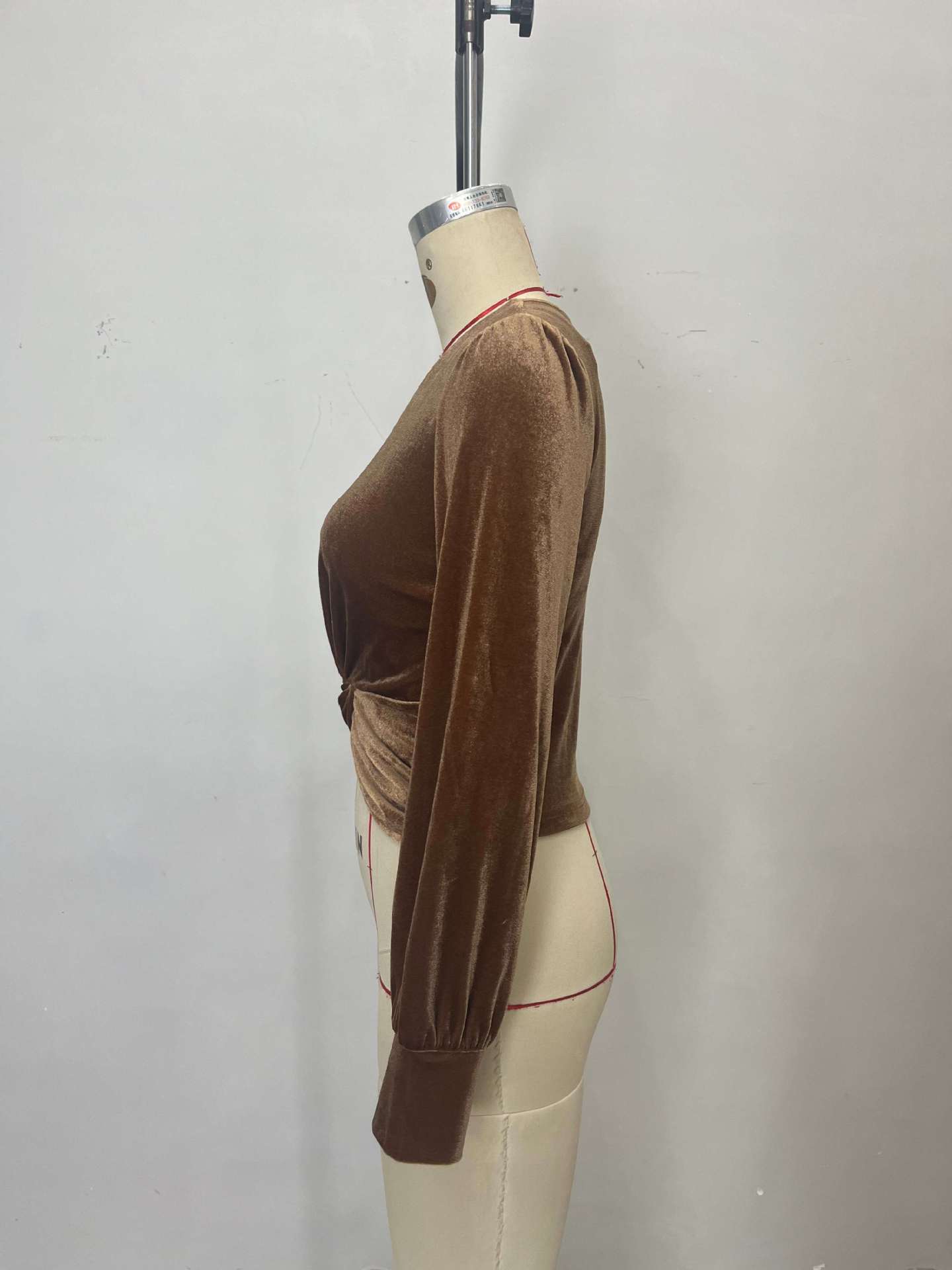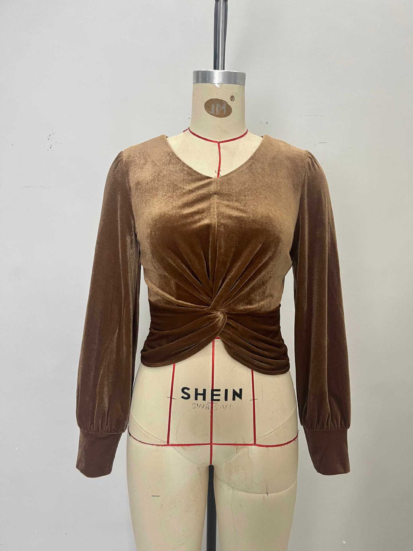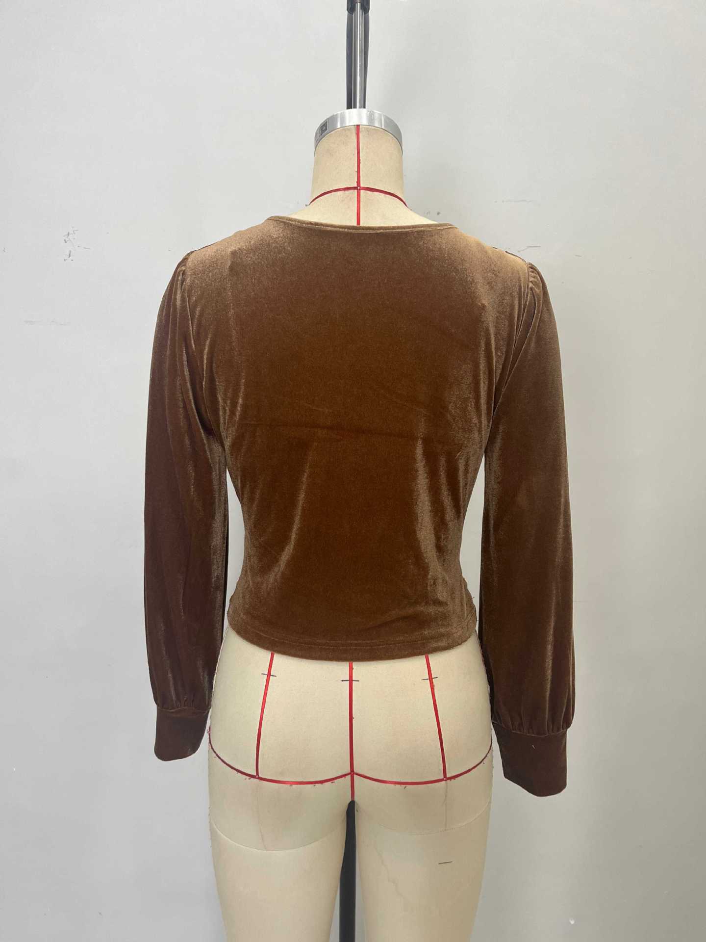 Autumn High Grade Velvet French Chic Waist Twist Design Tight Waist Long Sleeved Shirt Top