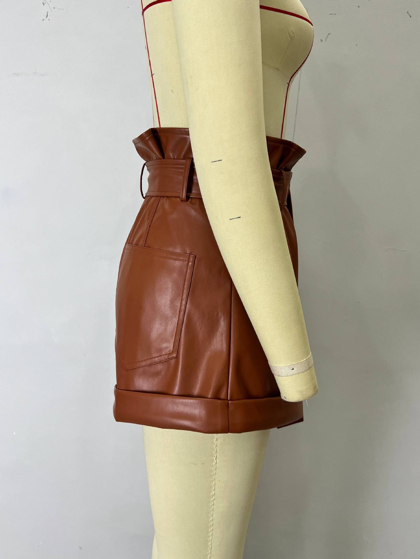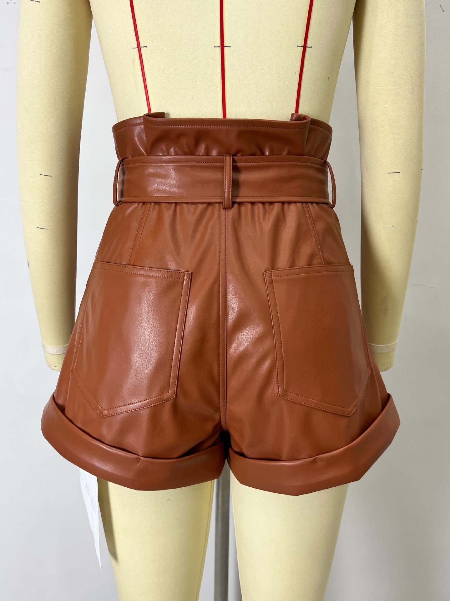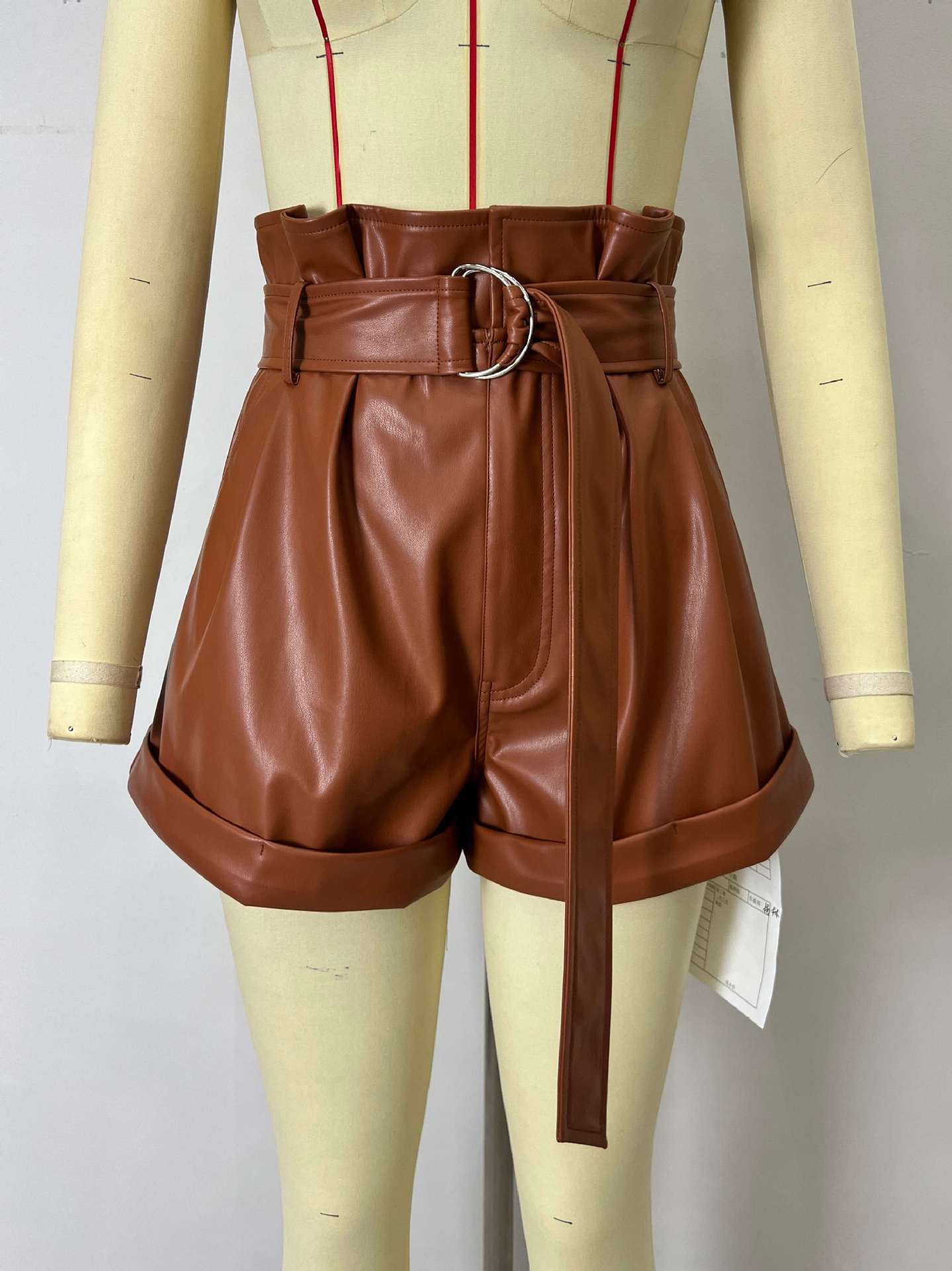Autumn Winter High Waist A line Faux Leather Pants Women Popular Wide Leg Slimming Shorts