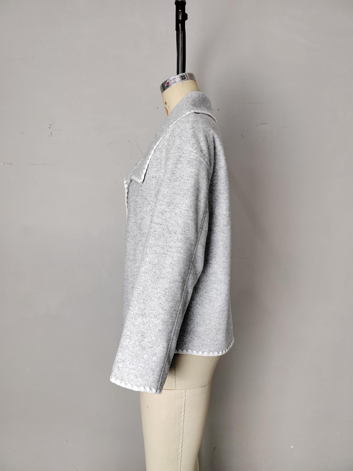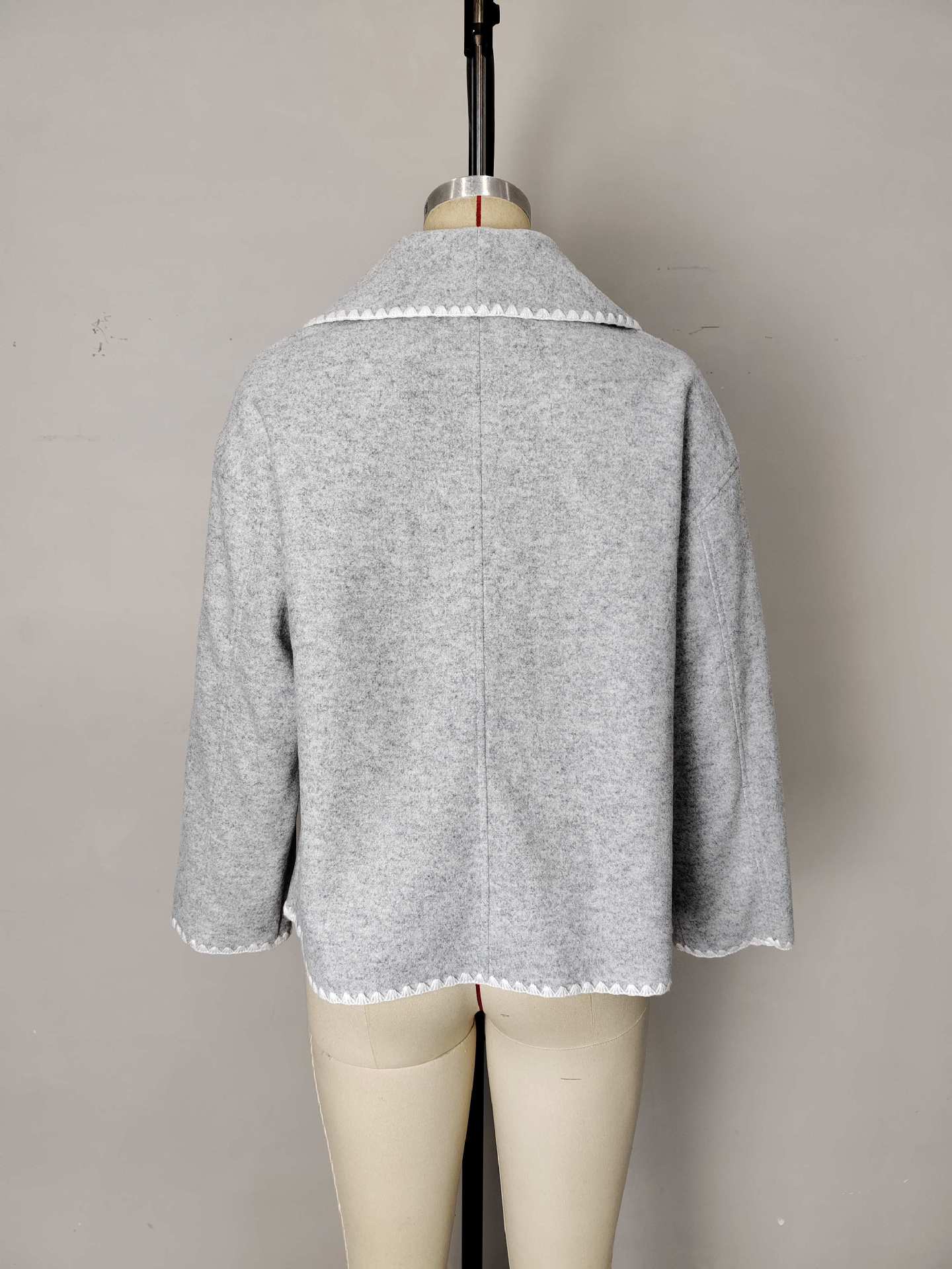 Autumn Winter Women Elegant Warm Big Collared Long Sleeve Short Contrast Color Loose Design Cardigan Coat