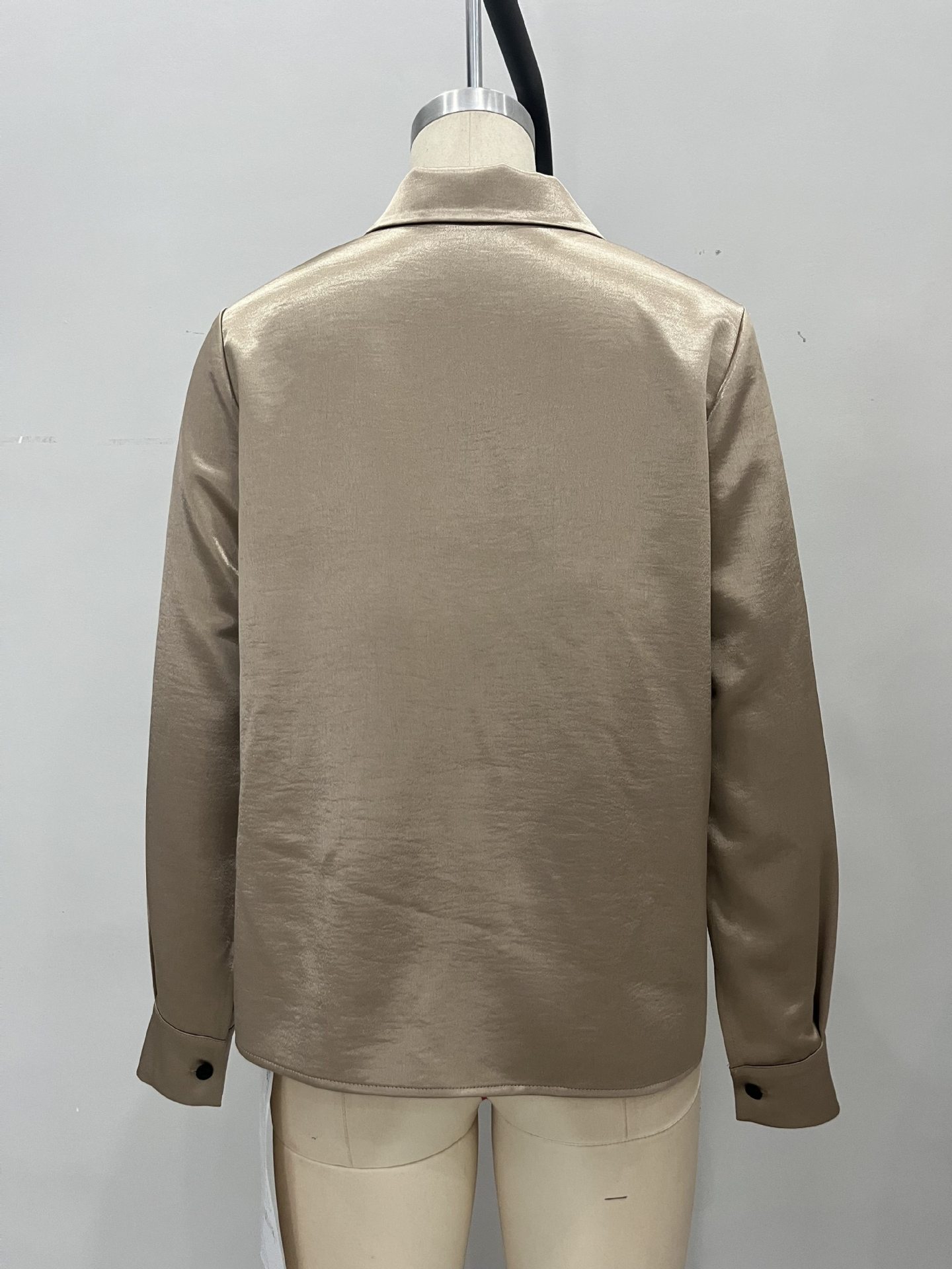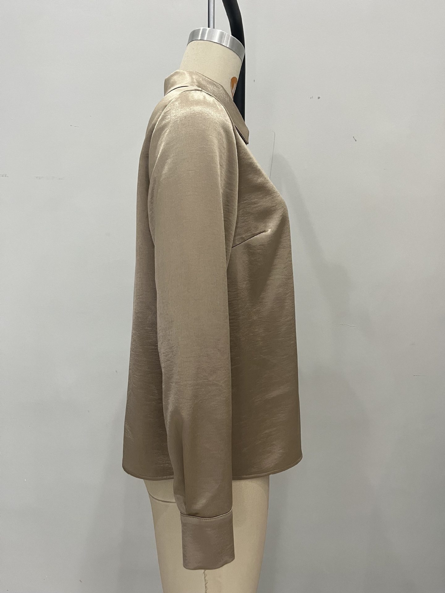 Elegant Party Top Modern Open Placket Autumn Long Sleeve Shirt Women