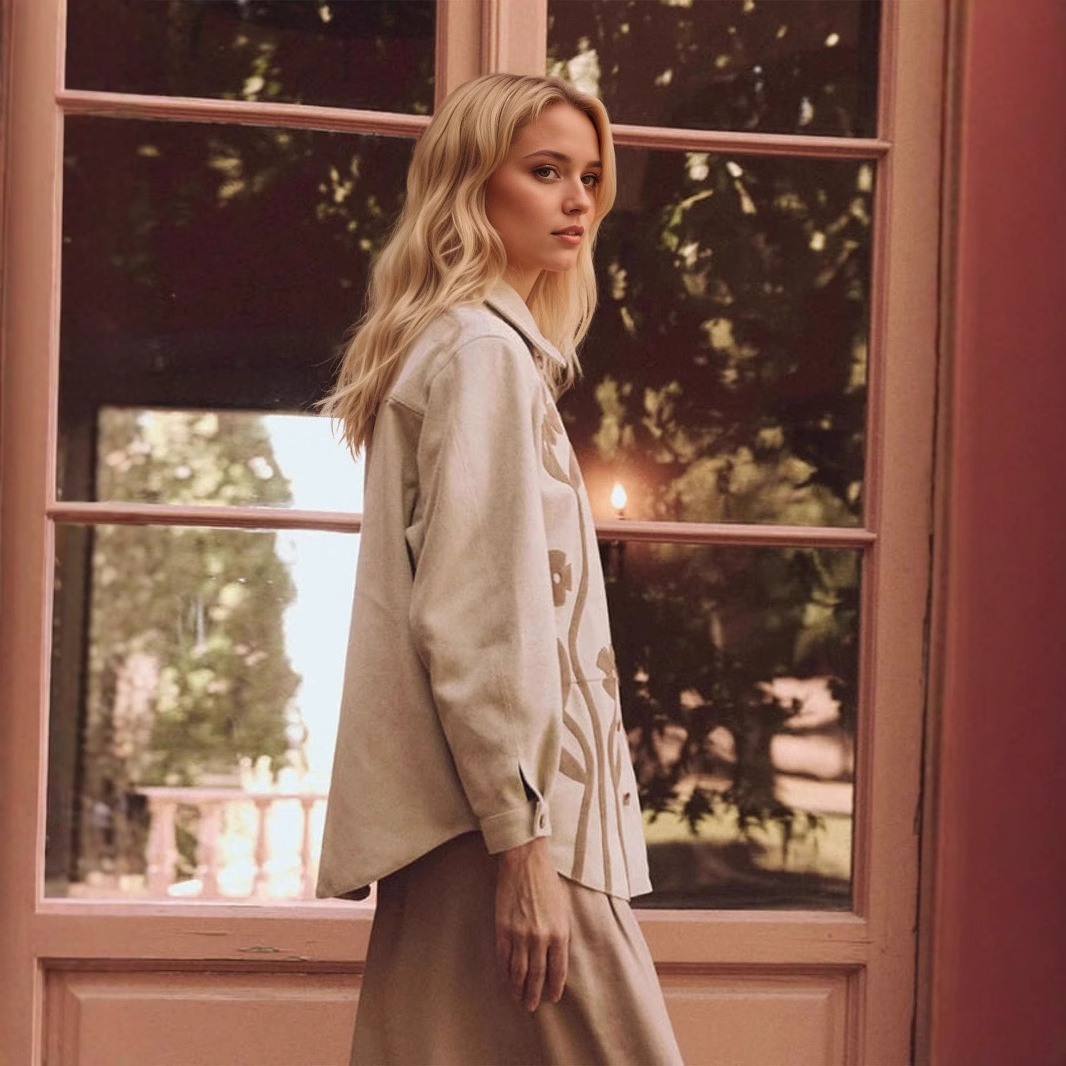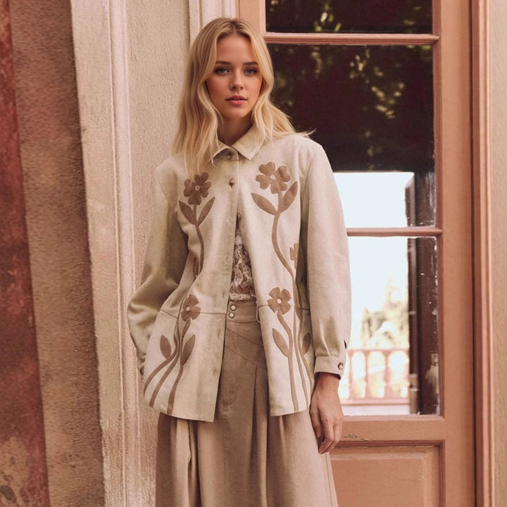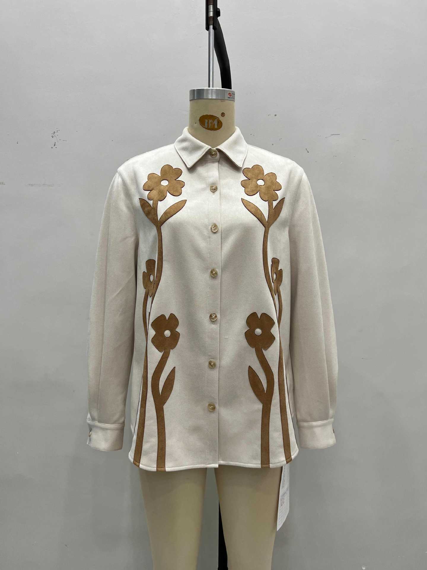Fall Coat Vintage Floral Composite Collared Loose All Match Shirt Top
