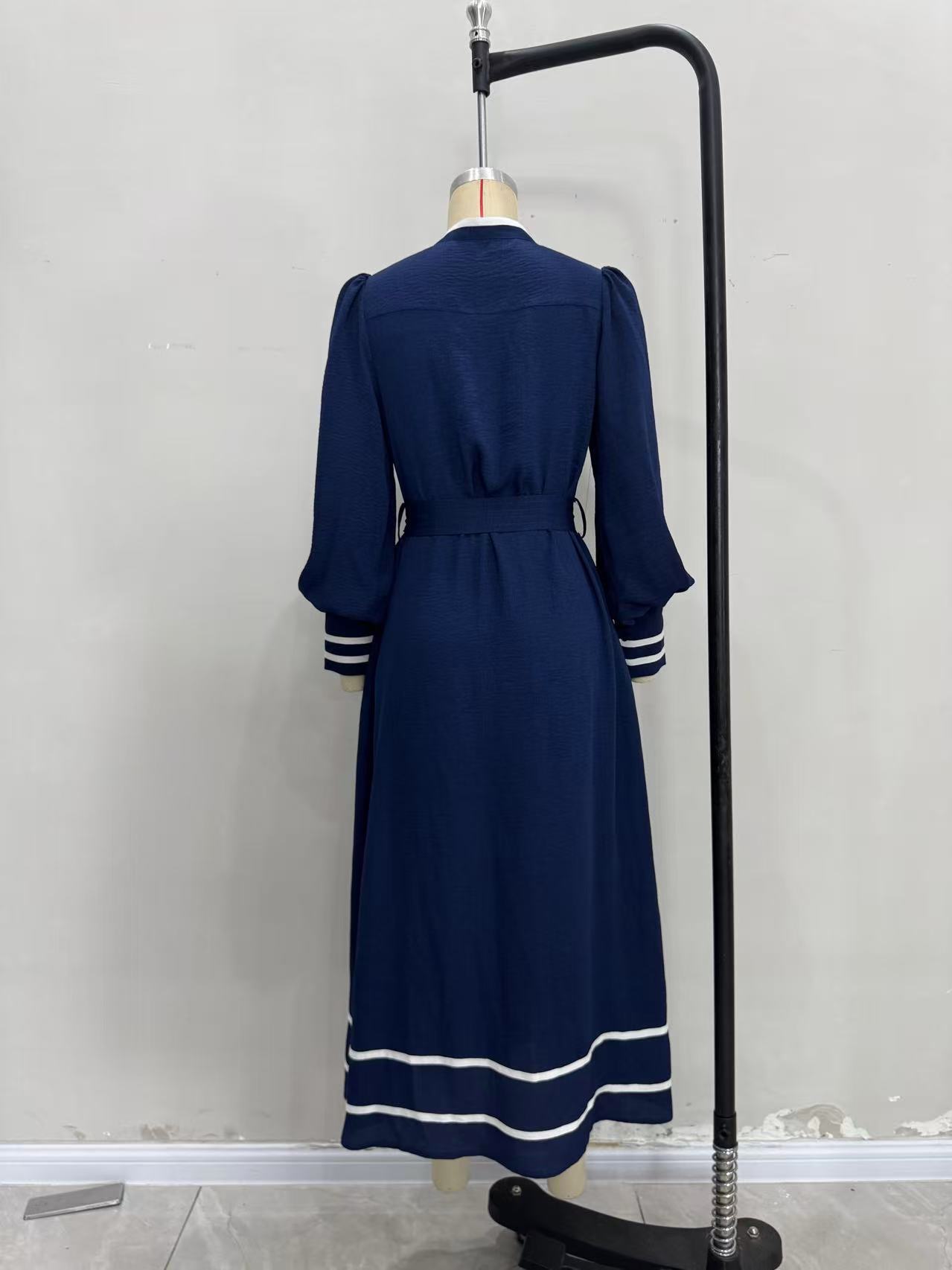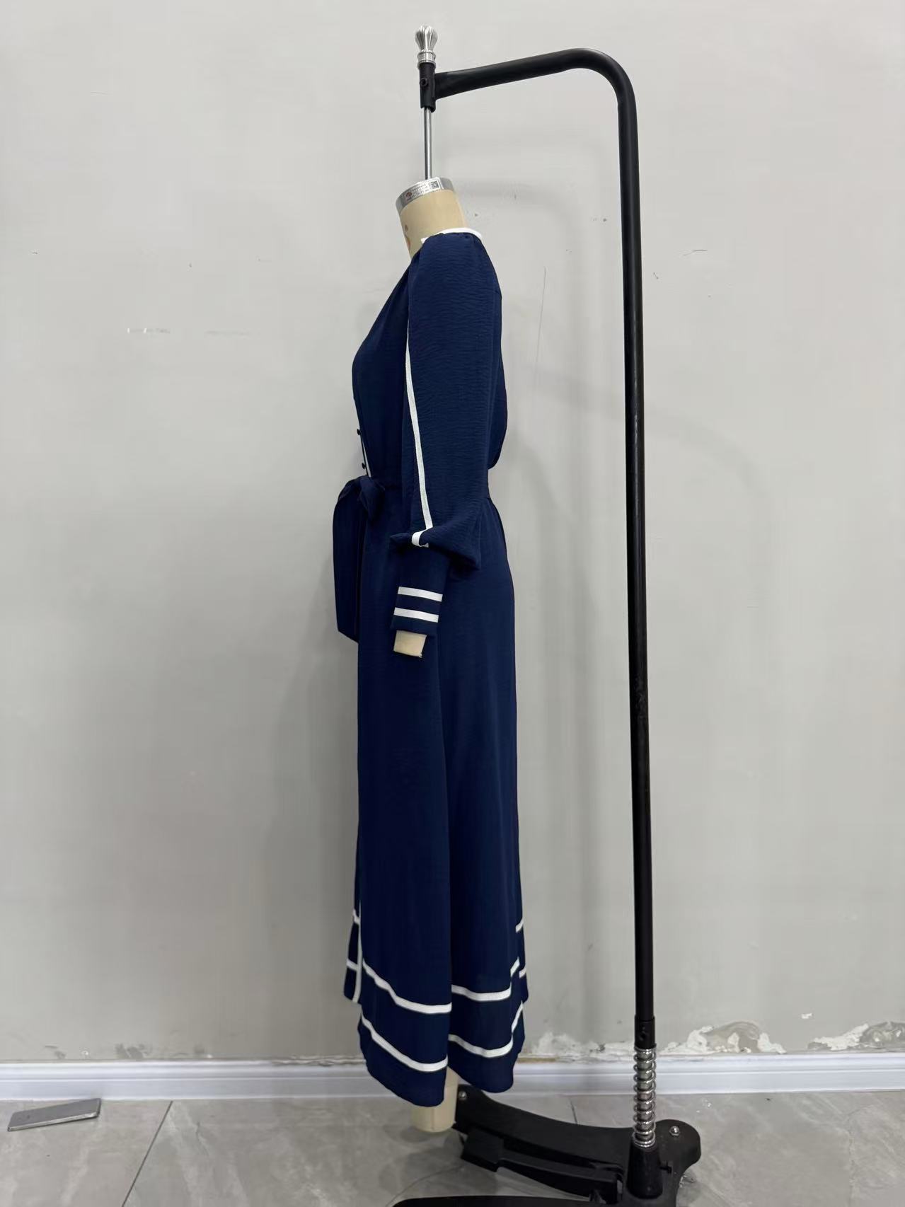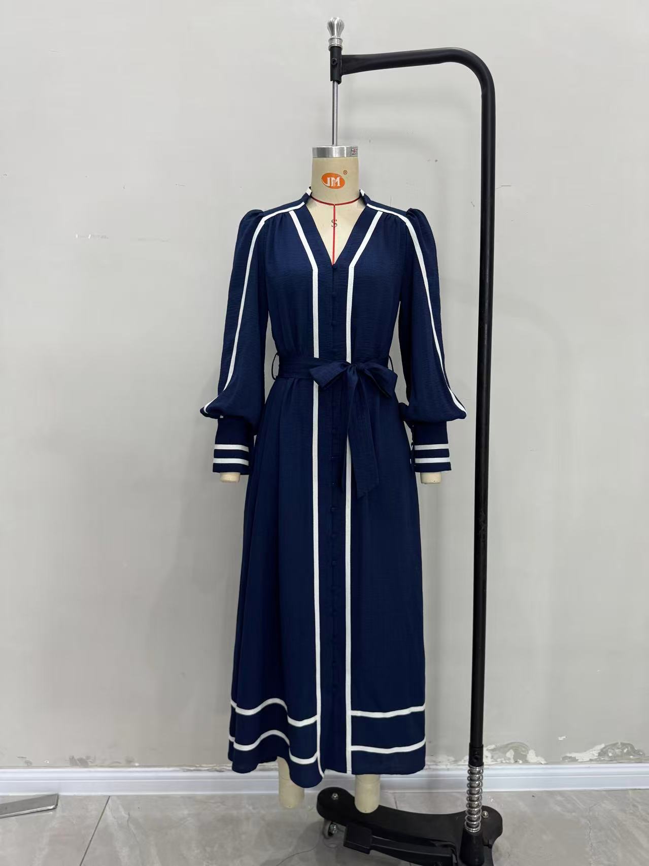 Retro V neck Light Self Tie Dress White Striped Design Retro to Create Dream