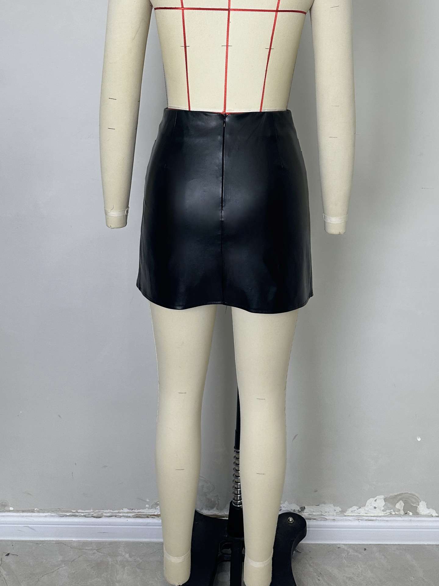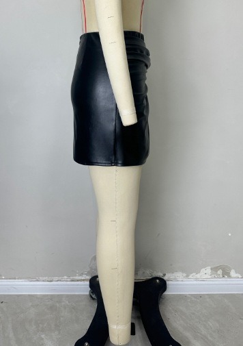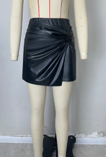 Sheath Skirt Women Clothing Autumn Winter Pleated Faux Leather All Matching Graceful Skirt