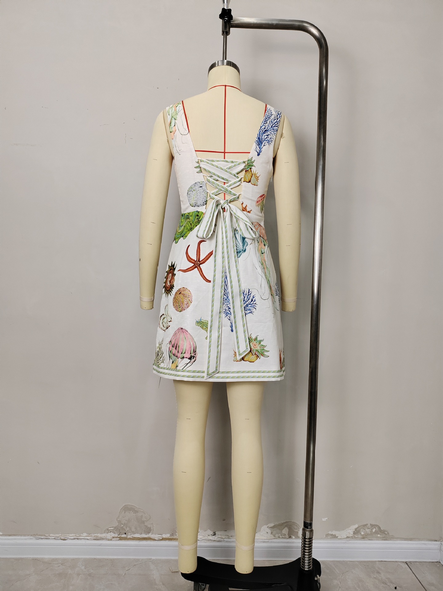Summer Autumn Backless Print Casual Sling Mini Dress
