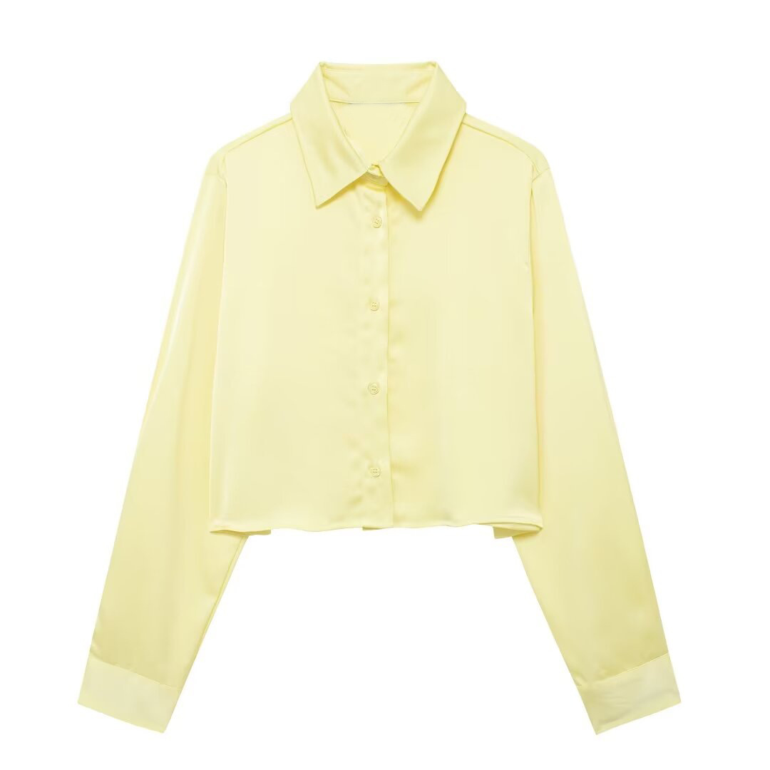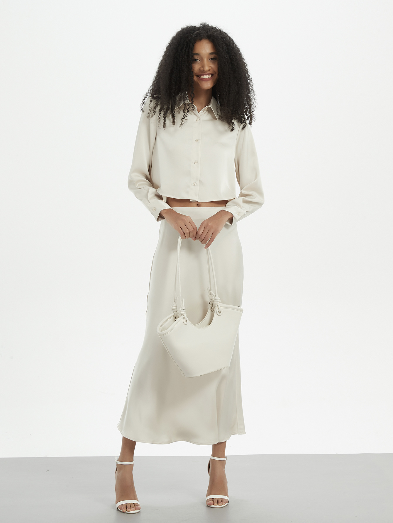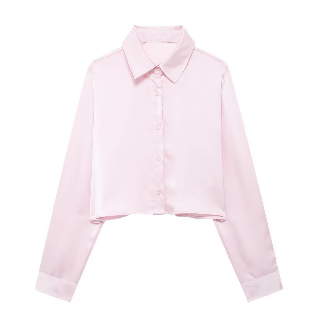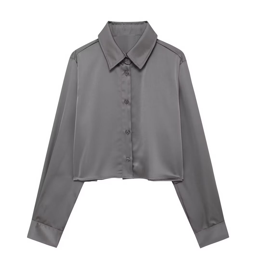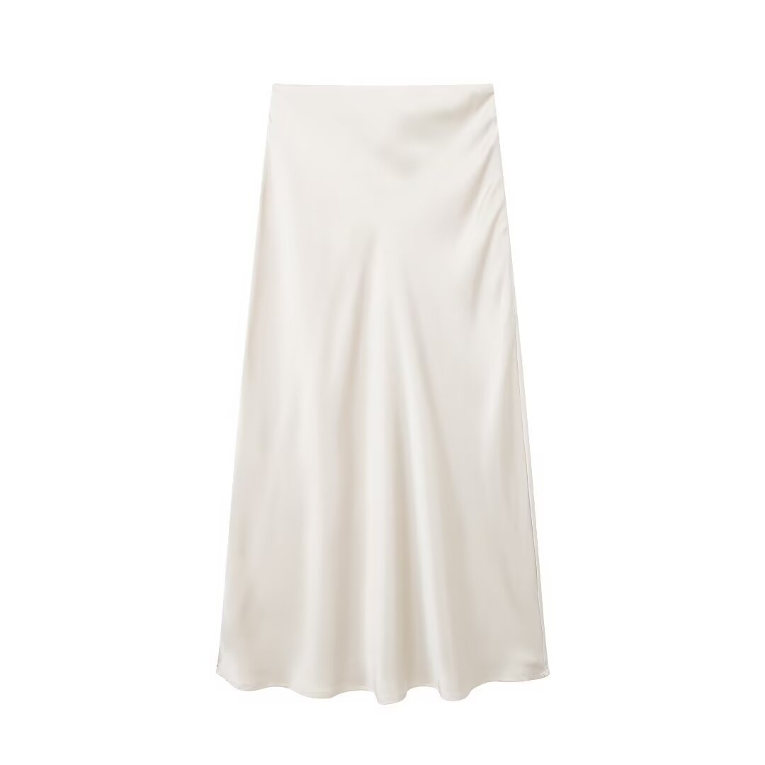 Women Clothing Simple Two Piece Sets Silk Satin Texture Long Sleeve Shirt Drape Skirt