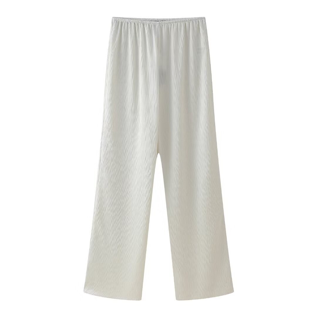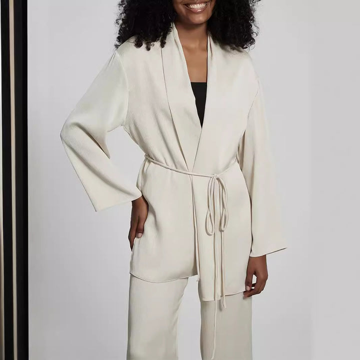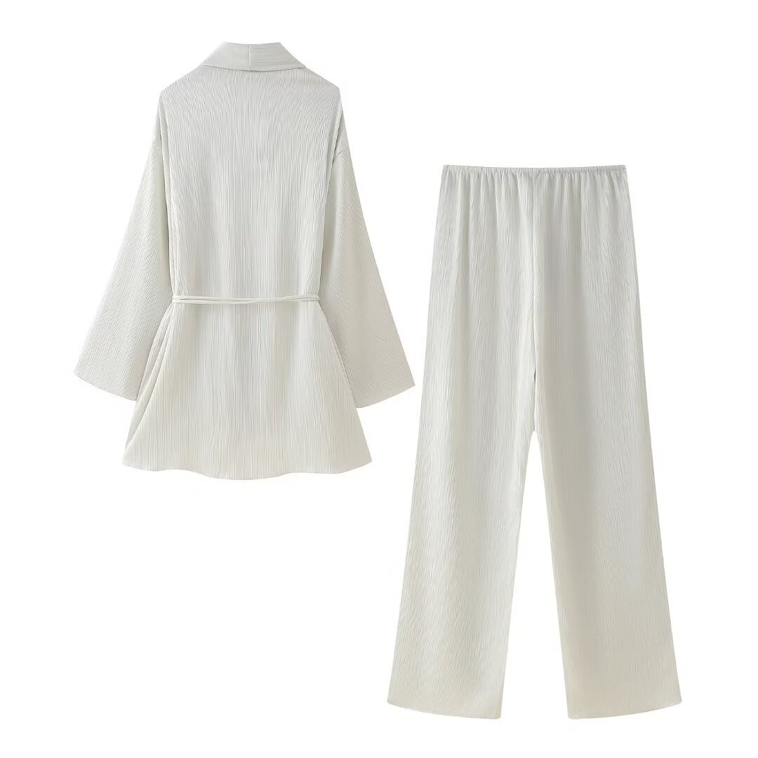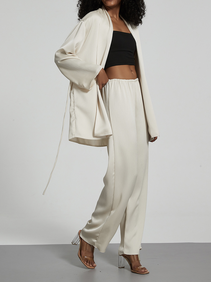 Women Clothing Two Piece Sets Loose Lace up Lead Peplum Top Wide Leg Trousers